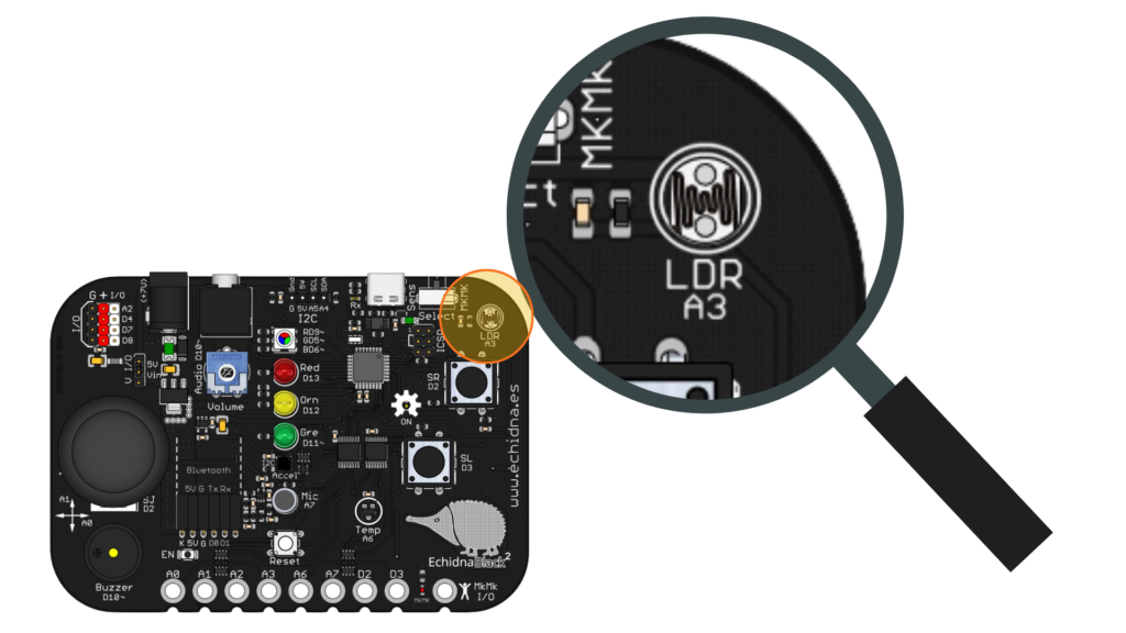 El comportamiento del gallo está controlado por una EchidnaBlack2 programada mediante EchidnaML. El elemento clave es la LDR (resistencia dependiente de la luz), que permite detectar cuándo amanece.