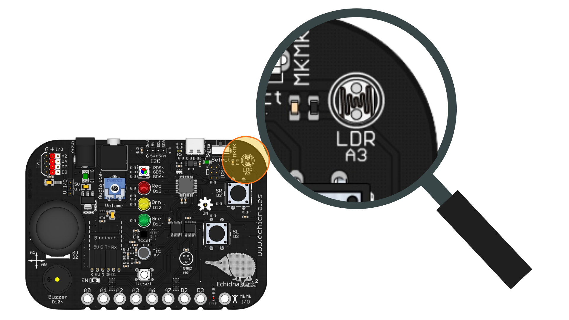 El comportamiento del gallo está controlado por una EchidnaBlack2 programada mediante EchidnaML. El elemento clave es la LDR (resistencia dependiente de la luz), que permite detectar cuándo amanece.