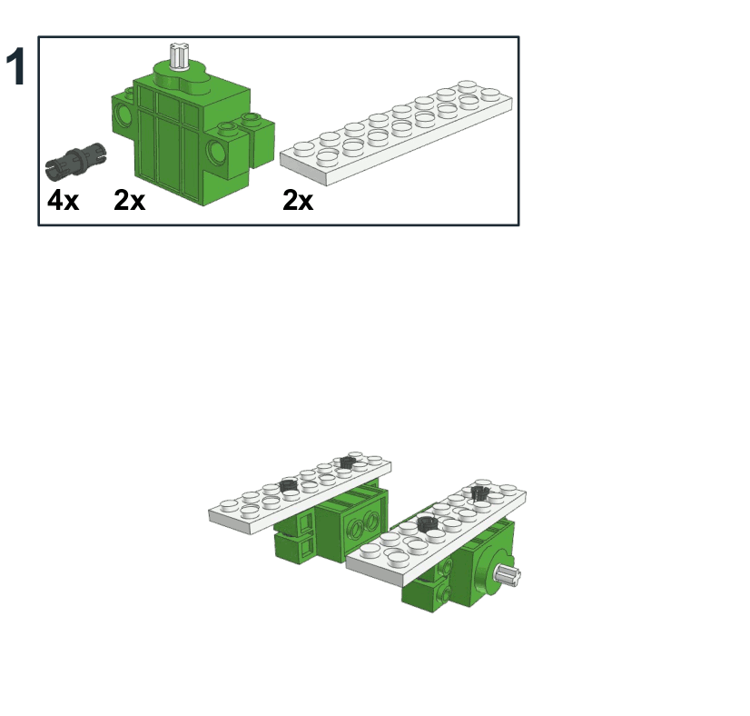 Siguiendo los principios de esta serie de actividades, el modelo se ha construido con un número reducido de bloques de construcción, buscando la sencillez y la facilidad a la hora de reproducirlo. Se apoya en dos elementos principales: