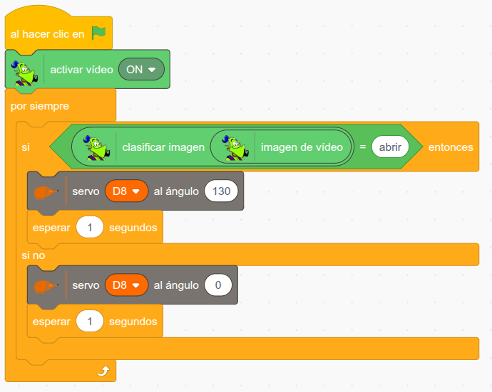 - Reconocimiento facial: Mediante un modelo de reconocimiento de imágenes creado con LearningML, integrado en el software EchidnaML, la caja se abrirá cuando la cámara reconozca al usuario autorizado. El método más completo, ya que aúna programación, robótica y machine learning.